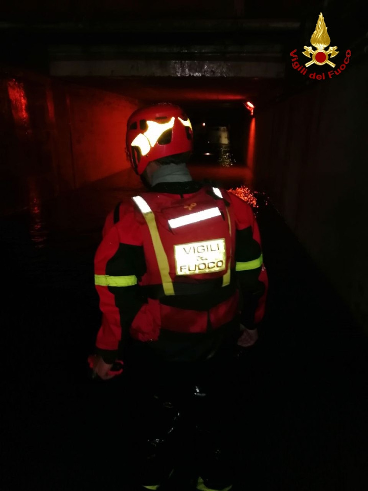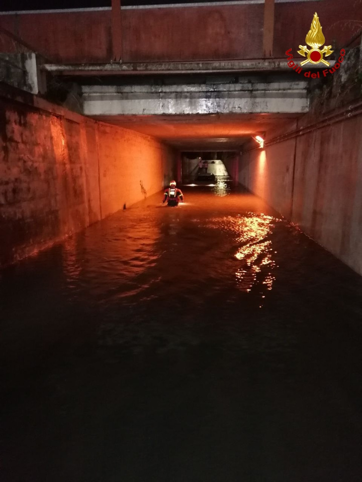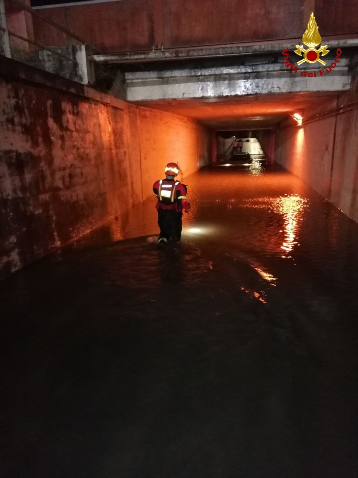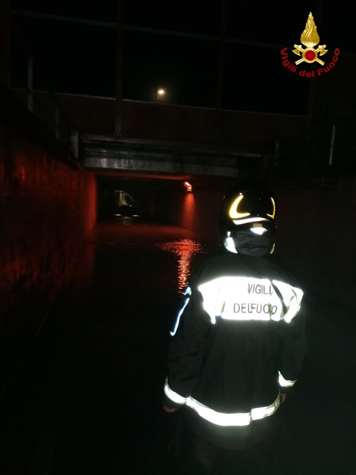 Tra gli interventi anche un soccorso per un'autovettura, rimasta bloccata con persone all'interno, in un sottopasso a Pozzuolo del Friuli (UD)