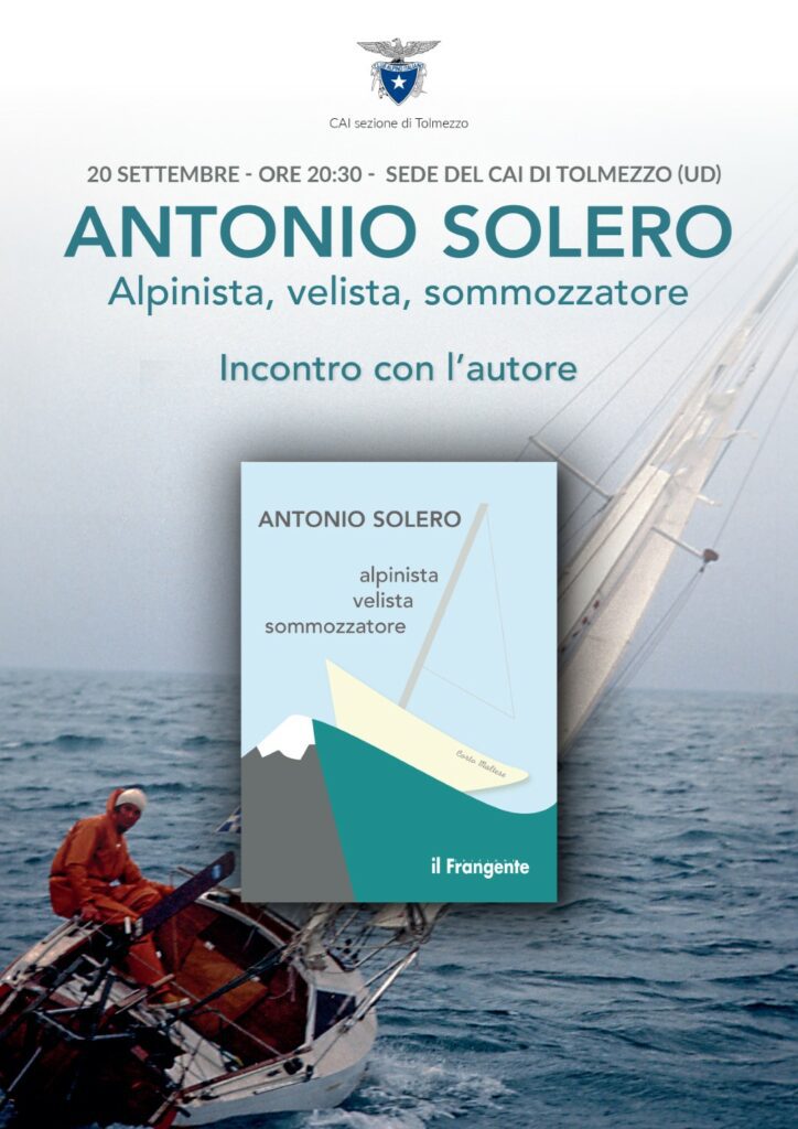 Sarà presentato mercoledì 20 settembre, alle ore 20.30 nella sede del Club Alpino Italiano di Tolmezzo il libro di Antonio Solero “Alpinista, velista e sommozzatore” pubblicato da Edizioni Il Frangente.