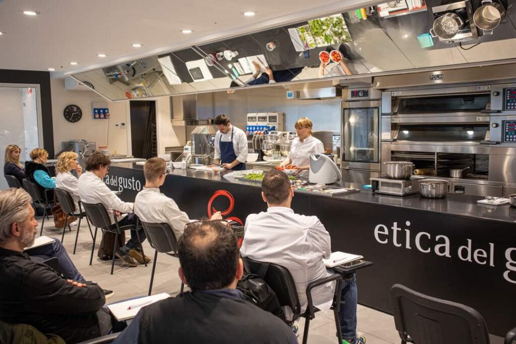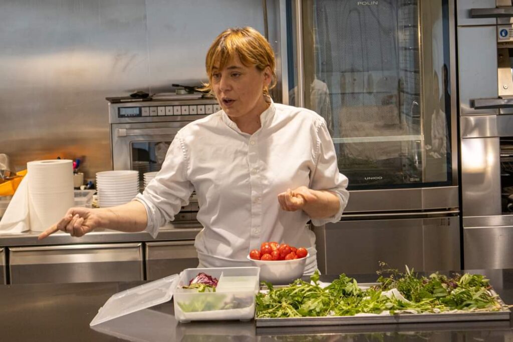 Durante le 4 ore di corso dimostrativo antonia Klugmann ha raccontato di come la sua idea di cucina si poggi su valori etici forti e sentiti, accomunati da una costante ricerca di sostenibilità e risparmio delle risorse naturali.