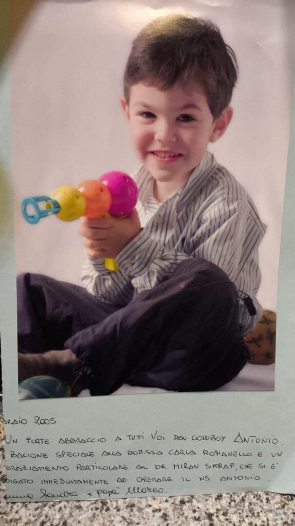 I bambini ricoverati, entusiasti della sua visita, hanno visto in Antonio non solo un atleta, ma anche una persona che ha condiviso con loro un pezzo della sua infanzia. Durante la sua permanenza in ospedale, che è durata circa un mese, Antonio si è divertito insieme agli altri piccoli pazienti, partecipando a giochi e attività organizzate dai volontari ABIO Udine. Un ricordo simpatico di quel periodo è stato catturato in una foto che lo mostra in veste di Cowboy, una delle immagini più apprezzate dai bambini presenti.