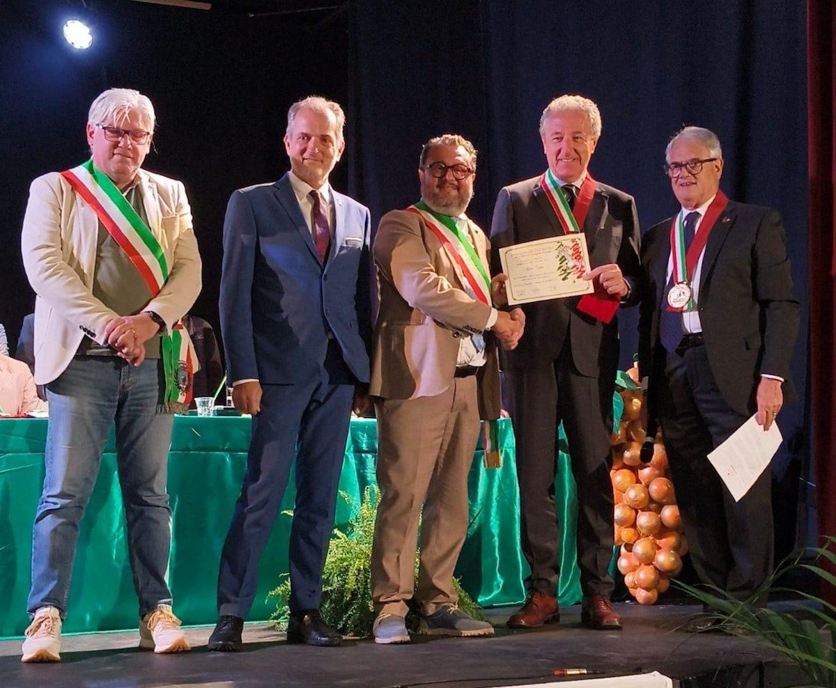 La medaglia è stata consegnata ad Attilio Vuga dal presidente nazionale degli Ambasciatori Carlo Rossi, dal presidente delle Città del Vino Angelo Radica, dal vicepresidente e coordinatore regionale del FVG Tiziano Venturini e dal vicecoordinatore regionale Maurizio D’Osualdo.