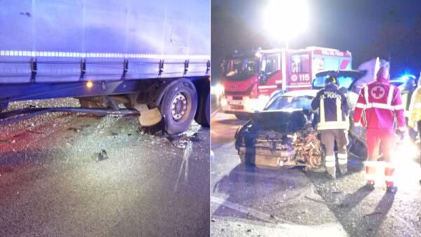 Udine, tremendo schianto sulla SP94: Clio finisce sotto un autoarticolato, conducente incastrato