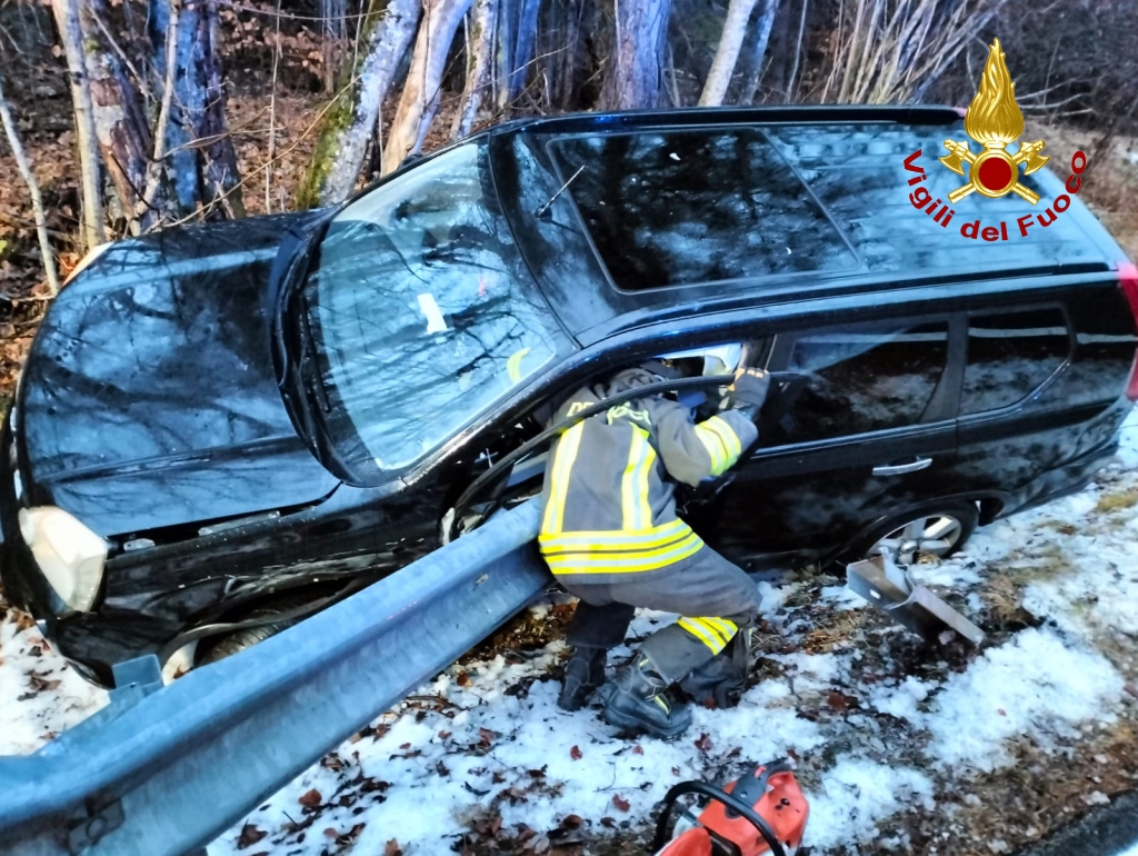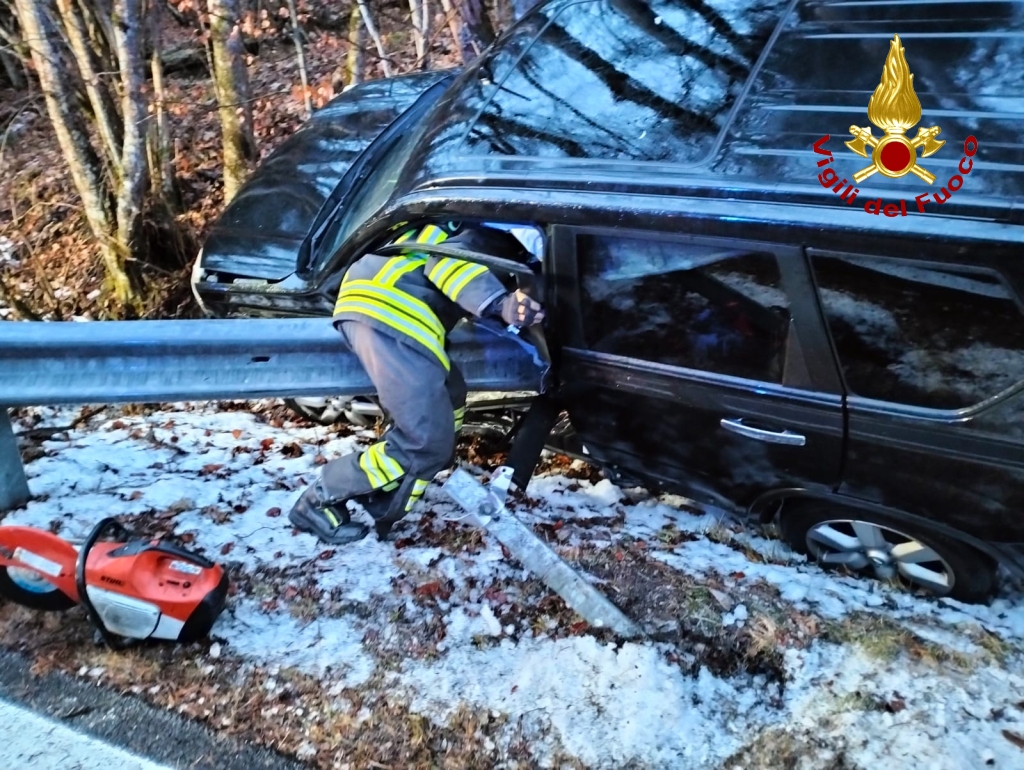 I pompieri giunti sul posto hanno trovato una vettura che, probabilmente a causa del ghiaccio formatosi sul manto stradale, è uscita di strada impattando violentemente contro il guard rail. La conducente è rimasta incastrata tra le lamiere dell’abitacolo.