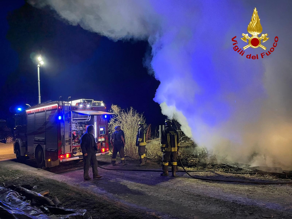 Brucia un deposito di legname, i pompieri salvano trattori e balle di fieno