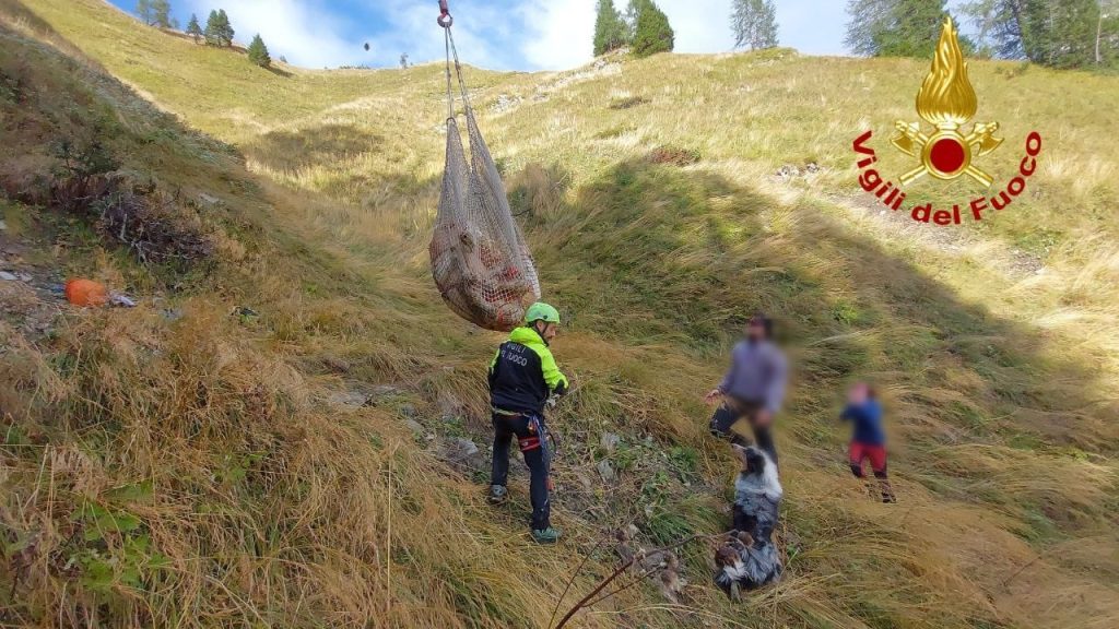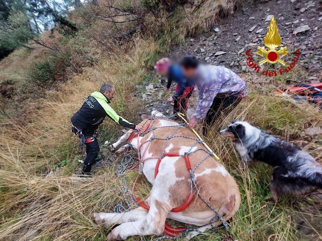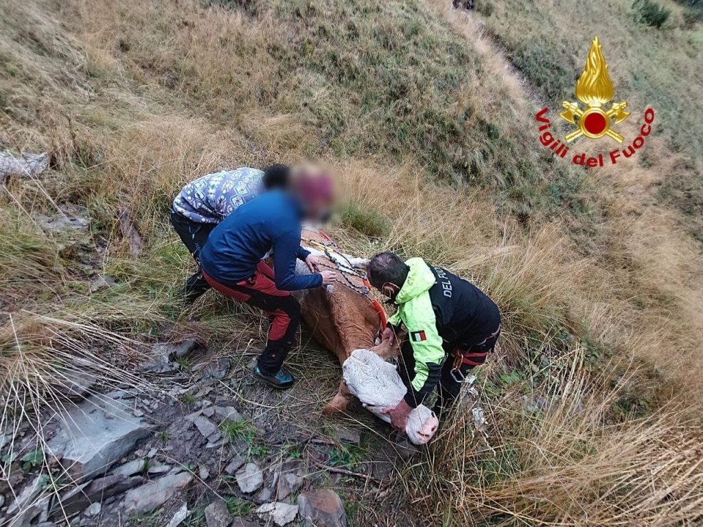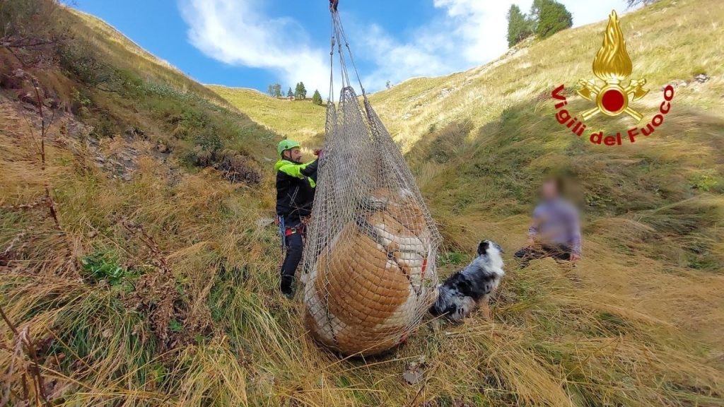 Dopo una breve attesa necessaria per operare in piena sicurezza (l'area era avvolta dalla nebbia), il velivolo è atterrato. I Vigili del Fuoco hanno assicurato l'animale con un imbrago e quindi l'elicottero della Protezione Civile lo ha trasportato in volo alla casera, libero di tornare a pascolare.