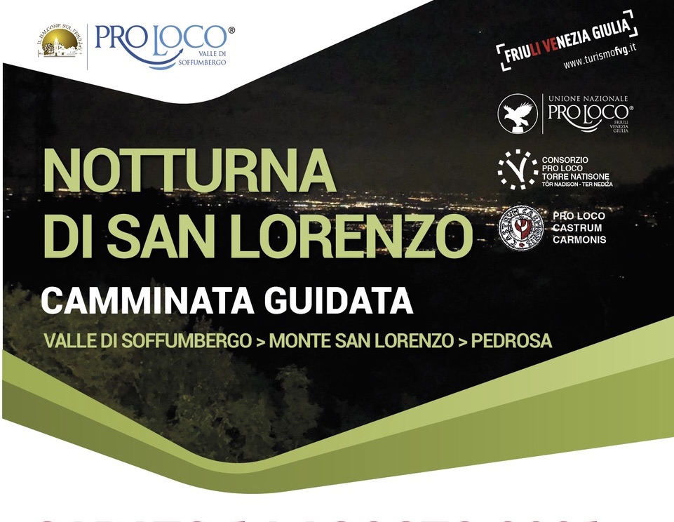 Una camminata in notturna a guardare le stelle dal balcone sul Friuli, ovvero dal belvedere di Valle di Soffumbergo, frazione del Comune di Faedis, dove è attiva la Pro Loco più piccola d'Italia. L’appuntamento è per sabato 12 agosto con la Notturna di San Lorenzo. Il ritrovo è previsto alle 19.30 nella piazza del paese per le iscrizioni con partenza alle ore 20.30.
