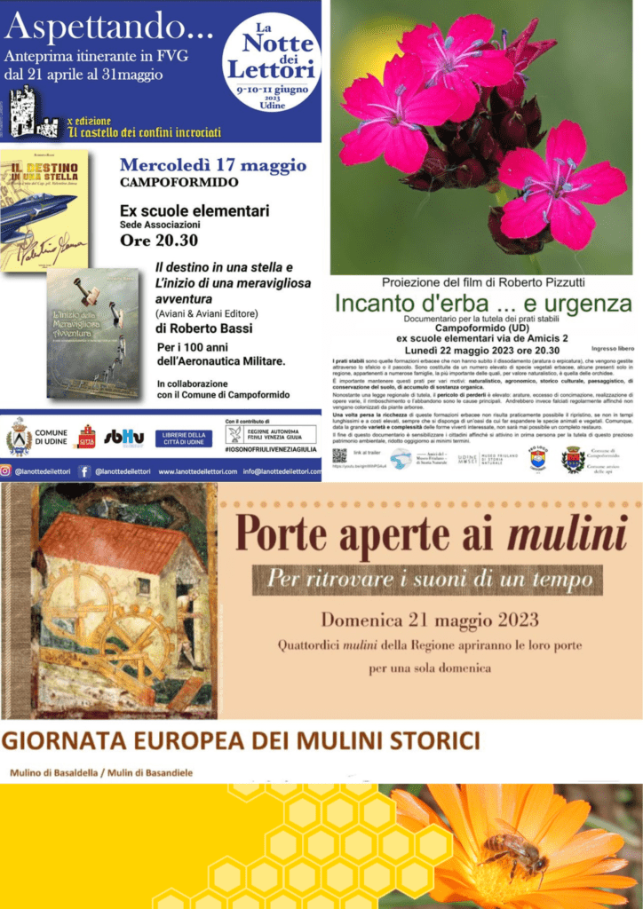 Campoformido. Incontri di autori, api e mulini dal 17 al 22 maggio 2023