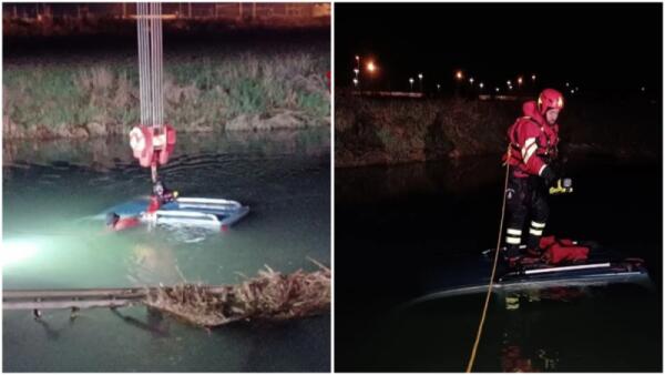 Dramma sfiorato nella Bassa friulana, auto nel canale nel cuore della notte