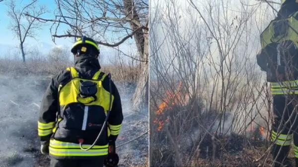 Incendio di sterpaglie nella zona golenale del Fiume Tagliamento: si alza in volo anche l'elicottero