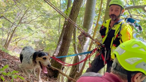 Cade nel canalone e rimane bloccato: cane salvato dai pompieri