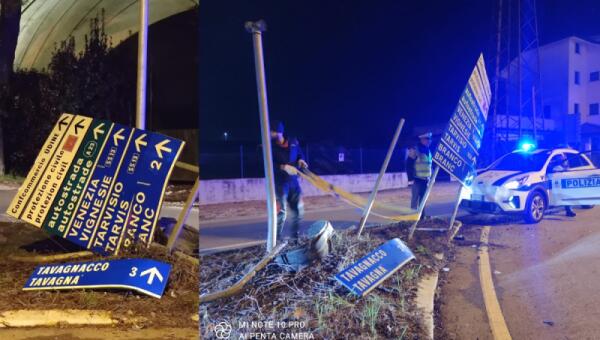 Feletto Umberto. Sbanda, abbatte la segnaletica alla rotonda e fugge