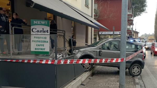 Paura a Udine, tampona un'auto e piomba sui tavolini della pasticceria: un ferito
