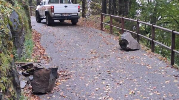 Rigolato. Grossi massi sulla carreggiata dopo le piogge: intervento della Protezione civile