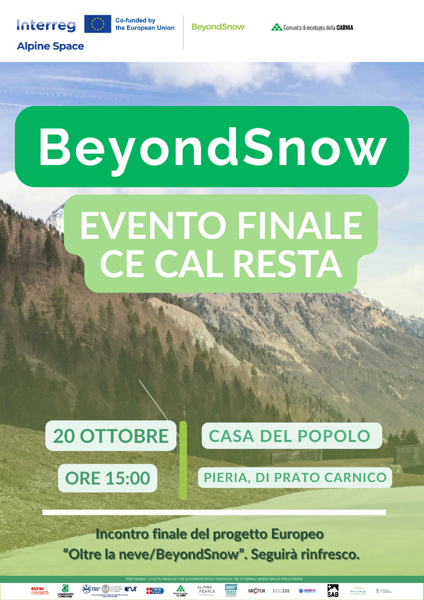 Torino ospita la conferenza finale di BeyondSnow; il 20 ottobre chiusura FVG a Prato Carnico con risultati e prospettive alpine.
