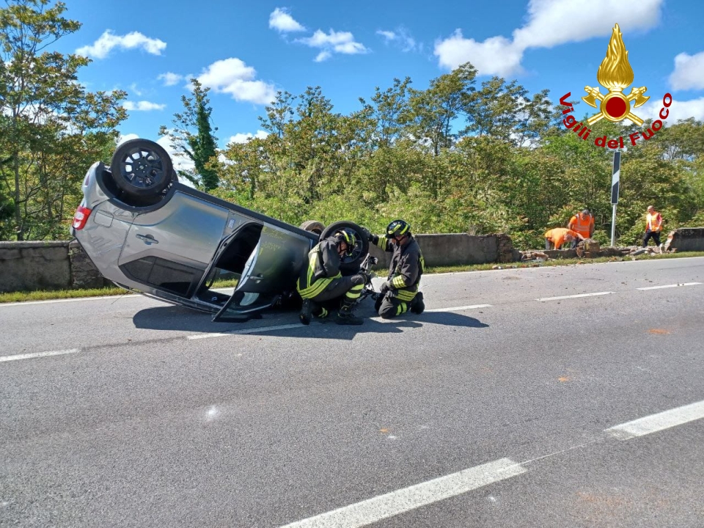 Giunti sul posto i Vigili del fuoco hanno trovato una vettura, il quale conducente era già stato preso in carico dal personale sanitario, che dopo aver colpito il muretto che separa la strada dalla linea ferroviaria aveva terminato la sua corsa a ruote all’aria a qualche metro dal punto d’impatto.