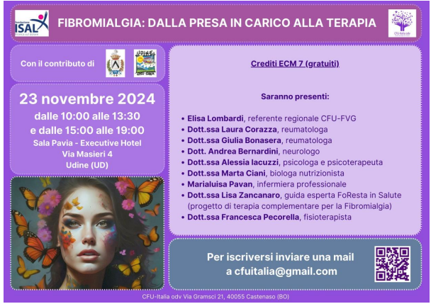 Fibromialgia, un convegno a Udine il 23 novembre 2024. Il programma