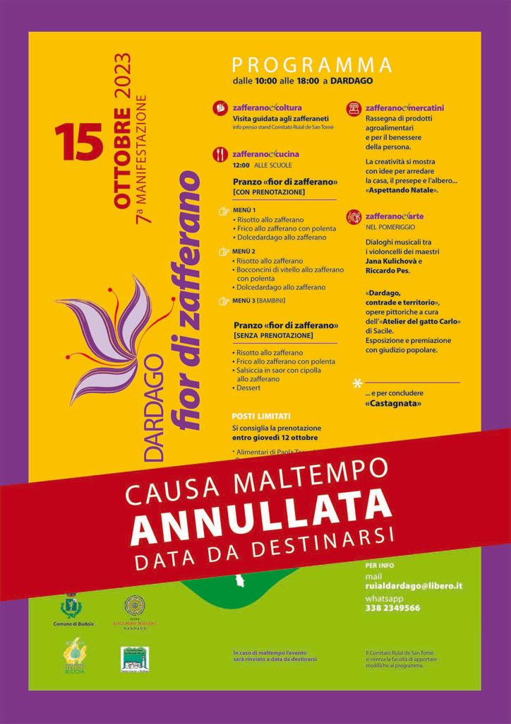 Il 15 ottobre 2023, Dardago, in provincia di Pordenone, celebrerà la settima edizione di "Dardago fior di zafferano", una giornata dedicata a questo squisito prodotto. L'evento includerà visite guidate agli zafferaneti, mercatini di prodotti agroalimentari locali e degustazioni di piatti a base di zafferano nel cortile delle scuole locali.