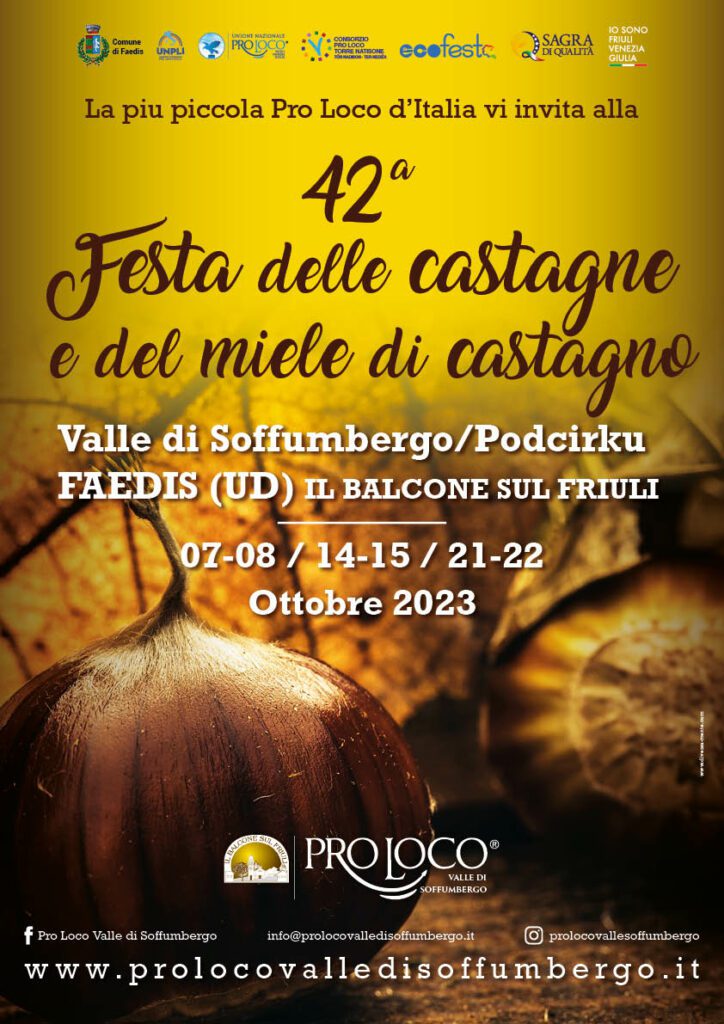 Grande successo di pubblico per la Festa delle castagne e del miele di castagno a Valle di Soffumbergo, borgo in Comune di Faedis (Udine-Friuli Venezia Giulia). La tradizionale festa che celebra il frutto principe di queste terre prosegue i suoi festeggiamenti anche questo weekend (sabato 14 e domenica 15 ottobre) e il prossimo (il 21 e il 22 ottobre). IL PROGRAMMA QUI