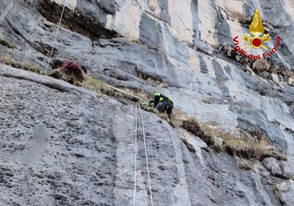 Era bloccata su una piccola cengia di una parete rocciosa a quota 1800
