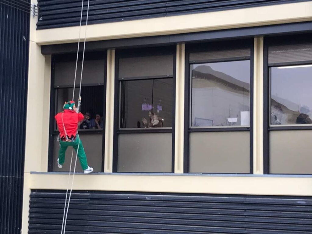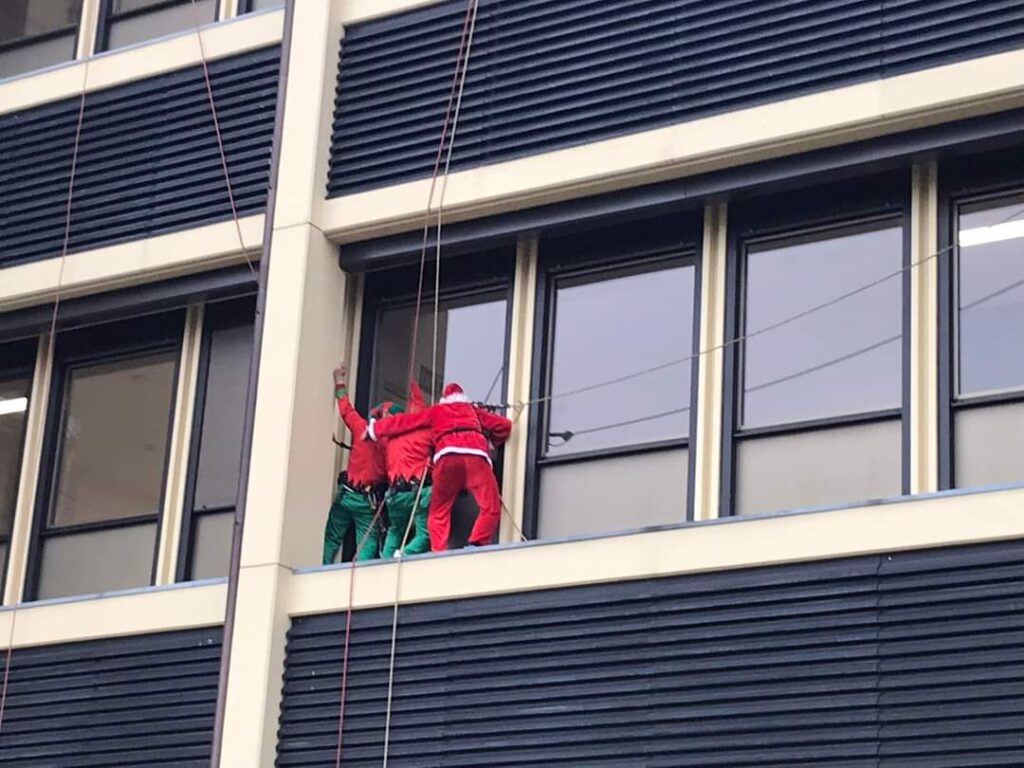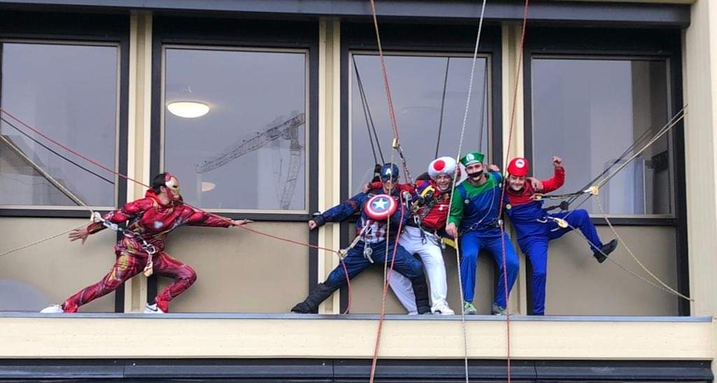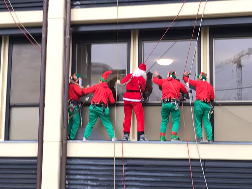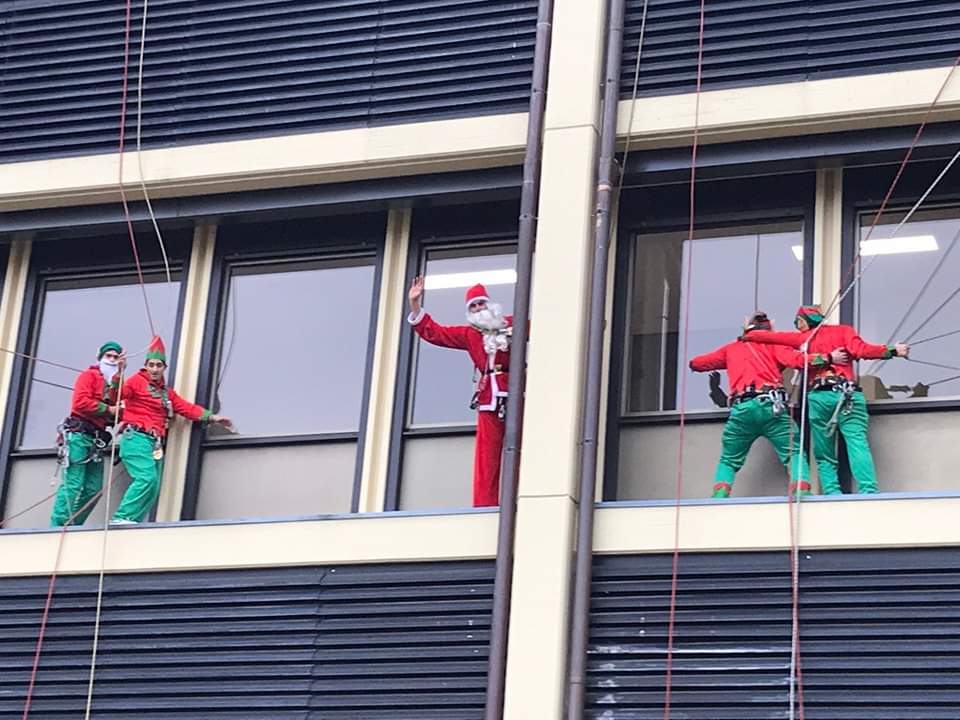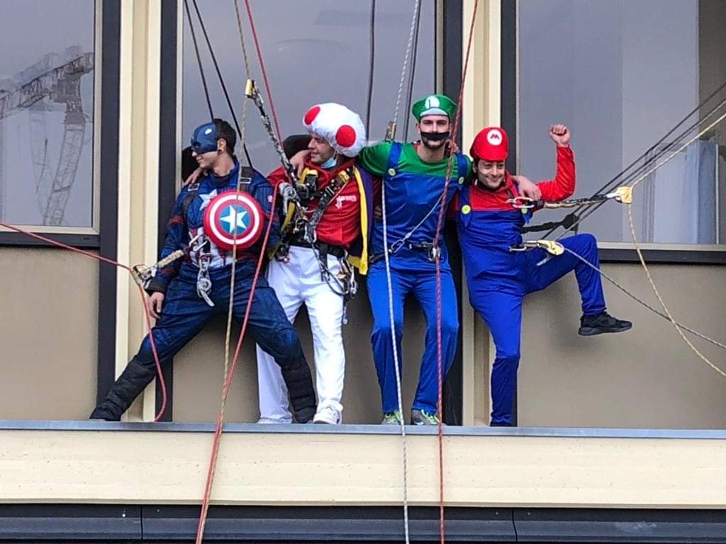 La squadra di supereroi acrobatici ha infatti scalato le pareti del padiglione Petracco. I funambolici eroi si sono affacciati alle finestre delle camerette e i piccoli ricoverati si sono trovati così faccia a faccia con Superman, Batman, l'Uomo Ragno e i loro amici, vivendo un'esperienza indimenticabile.