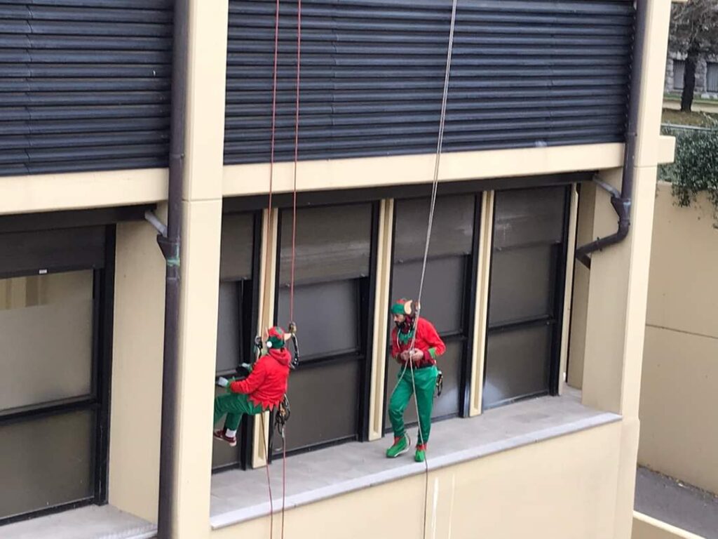 UDINE. Si sono calatati dal tetto dell’ospedale Santa Maria della Misericordia di Udine regalando ai bambini ricoverati, ai piccoli ospiti della struttura e le loro famiglie un’esperienza unica ed emozionante.