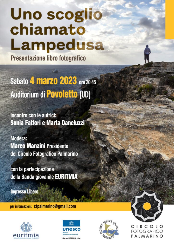 Il connubio con la musica, ed in particolare la promozione di realtà locali virtuose, rappresenta una costante delle presentazioni di “Uno scoglio chiamato Lampedusa” e quella del 4 marzo, a Povoletto, non farà eccezione. Ad allietare la serata, moderata dal presidente del Circolo Fotografico Palmarino, Marco Manzini, le autrici racconteranno la “loro” Lampedusa e presenteranno, grazie ad un video, alcune immagini tratte dal libro, con intramezzi musicali eseguiti dalla Banda giovanile Euritmia di Povoletto.