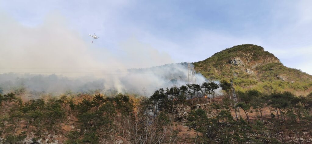 Le fiamme si sono avvicinate ad alcuni tralicci della linea elettrica di alta tensione che è stata disalimentata per permettere che le operazioni di spegnimento si svolgessero in sicurezza.