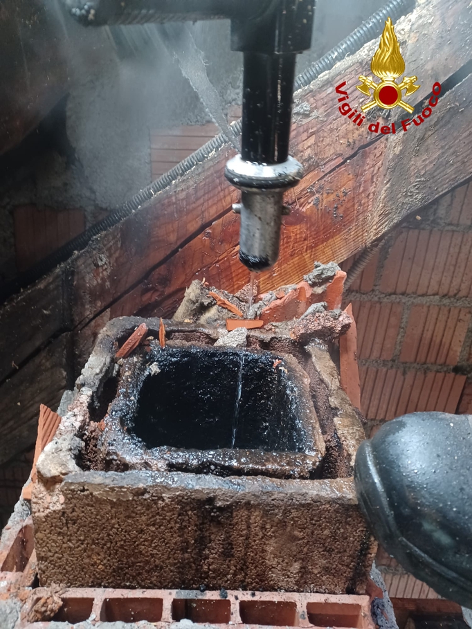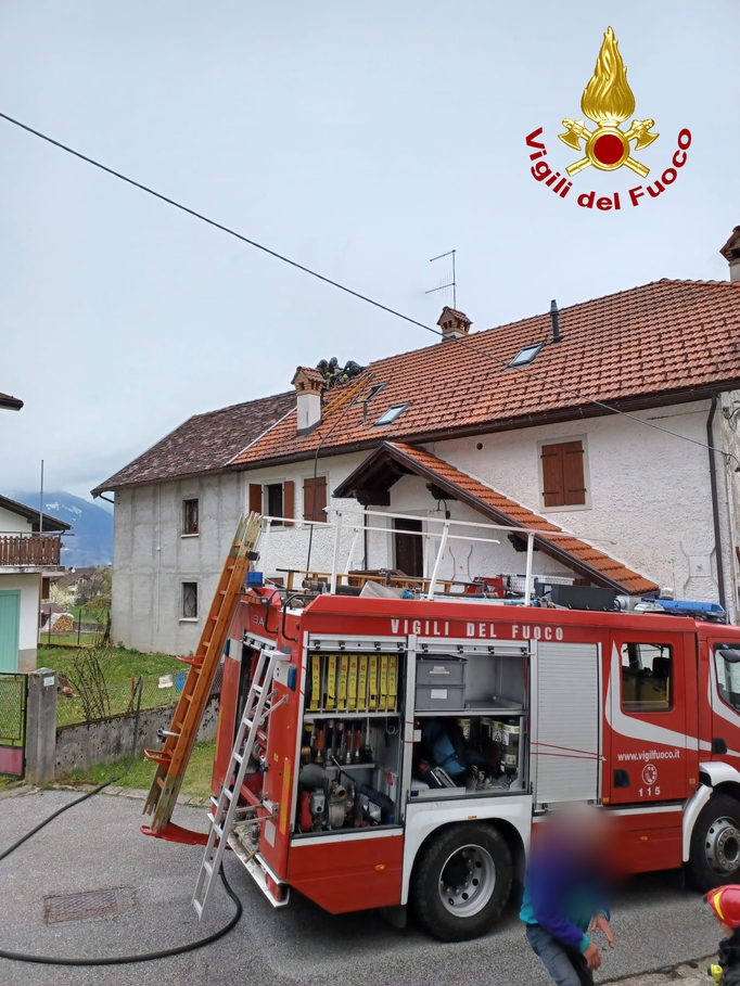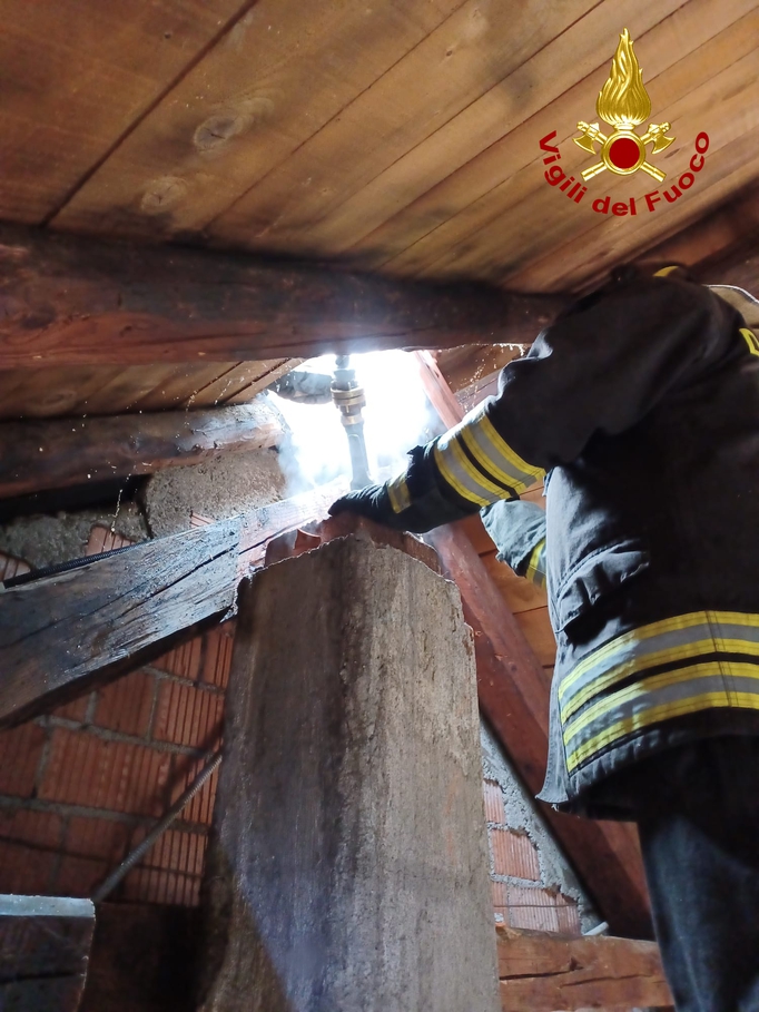 Per riuscire a fermare le fiamme prima che coinvolgessero l'intero tetto i Vigili del fuoco hanno provveduto a tagliare una parte della copertura in legno della casa interessata dall'incendio.