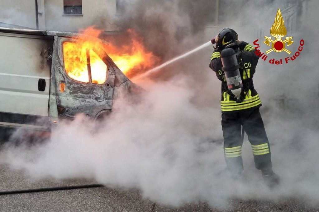 Indossati gli autorespiratori, i vigili hanno attaccato l’incendio su due fronti: da un lato per raffreddare e proteggere il contatore del gas e la tubatura, dall’altro per spegnere il furgone in fiamme.