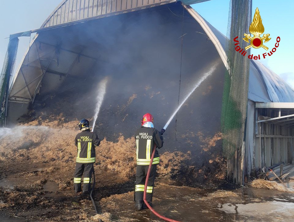 Al momento sono in corso le operazioni di spegnimento dell'incendio che non ha coinvolto persone, animali e nemmeno mezzi agricoli.
