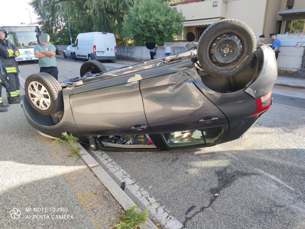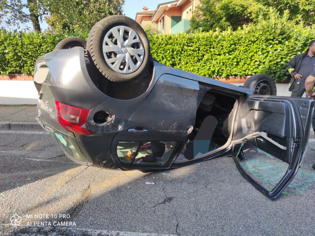 Incidente a Feletto Umberto, scontro tra auto e furgone: la vettura si ribalta