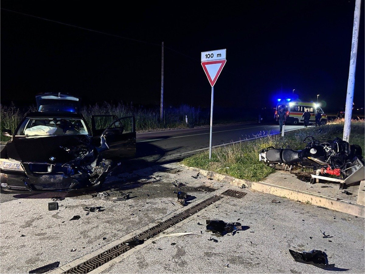 Tremendo frontale tra BMW e moto sulla SP48 a Premariacco: centauro sbalzato per 15 metri | FOTO -