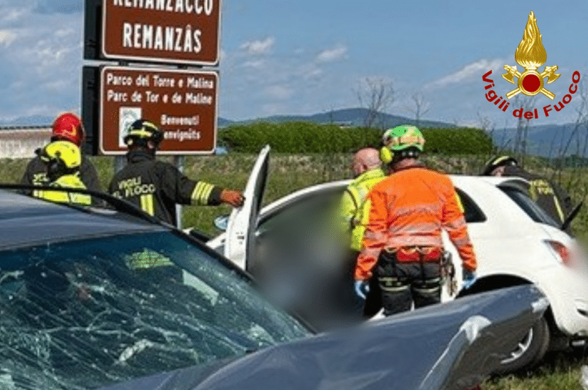 REMANZACCO (UDINE) – Grave scontro tra due automobili nel primo pomeriggio di oggi, martedì 13 maggio, in via Buttrio, nel comune di Remanzacco, in provincia di Udine. L’allarme è scattato intorno alle 15:00, quando una squadra dei Vigili del fuoco del distaccamento di Cividale del Friuli è intervenuta sul posto per liberare una delle due conducenti rimasta incastrata nell’abitacolo.