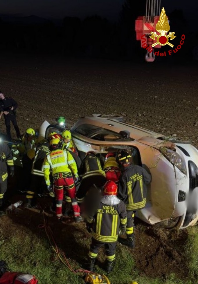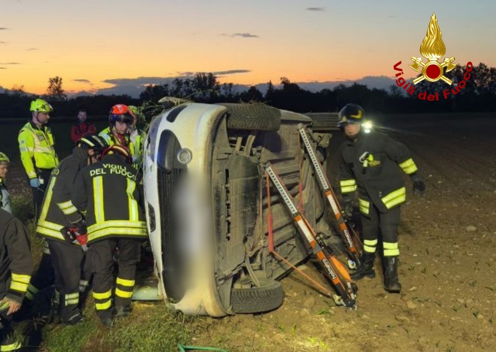 Si ribalta con l'auto e carambola in un campo: tagliato il parabrezza per estrarre il conducente ferito