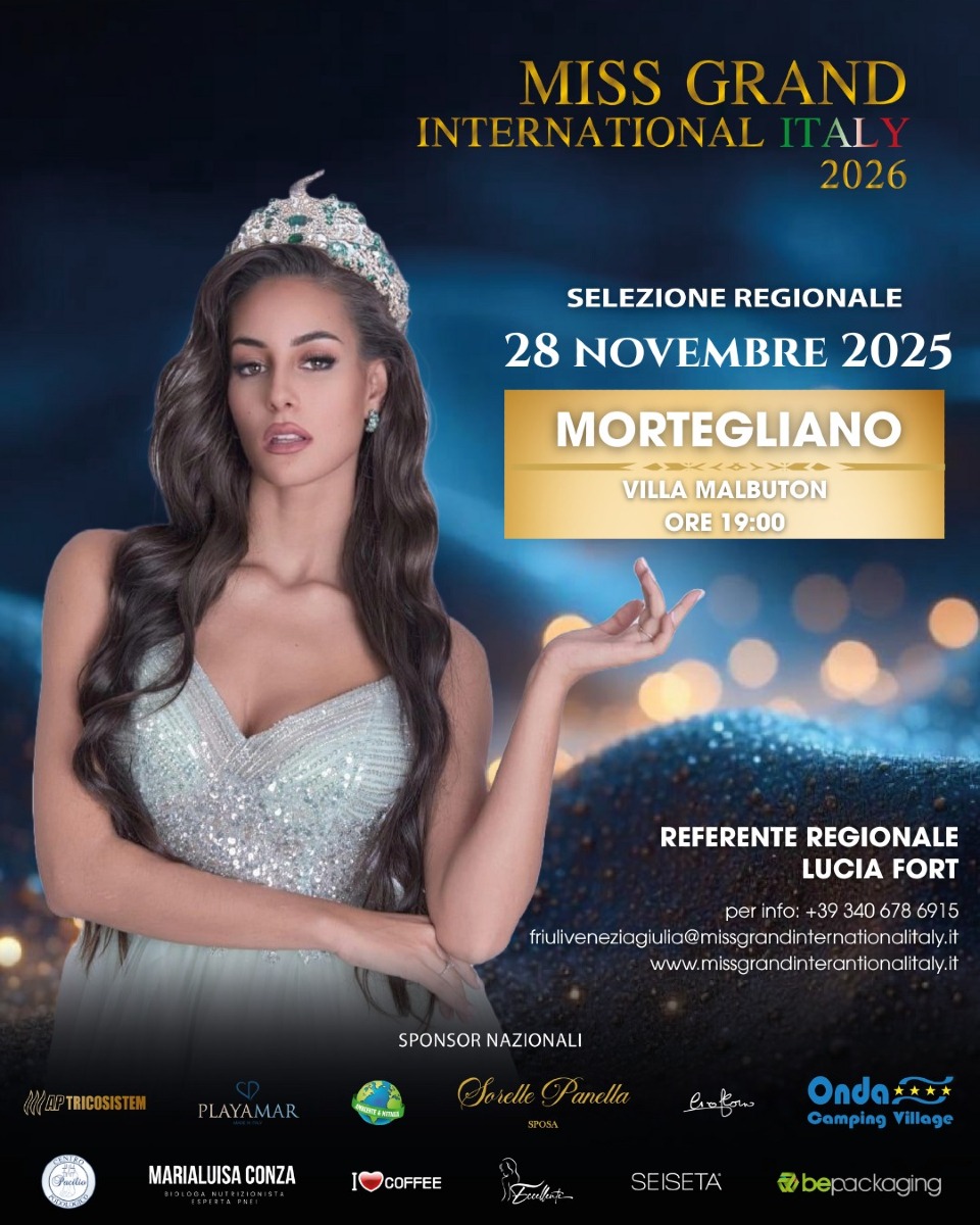 MORTEGLIANO (UD) – Venerdì 14 novembre 2025, la splendida Villa Malbuton di Mortegliano diventerà il raffinato palcoscenico della selezione regionale di Miss Grand International Italy Friuli Venezia Giulia 2026, un appuntamento che unisce moda, eleganza e valori etici, ponendo al centro bellezza, talento e impegno sociale.