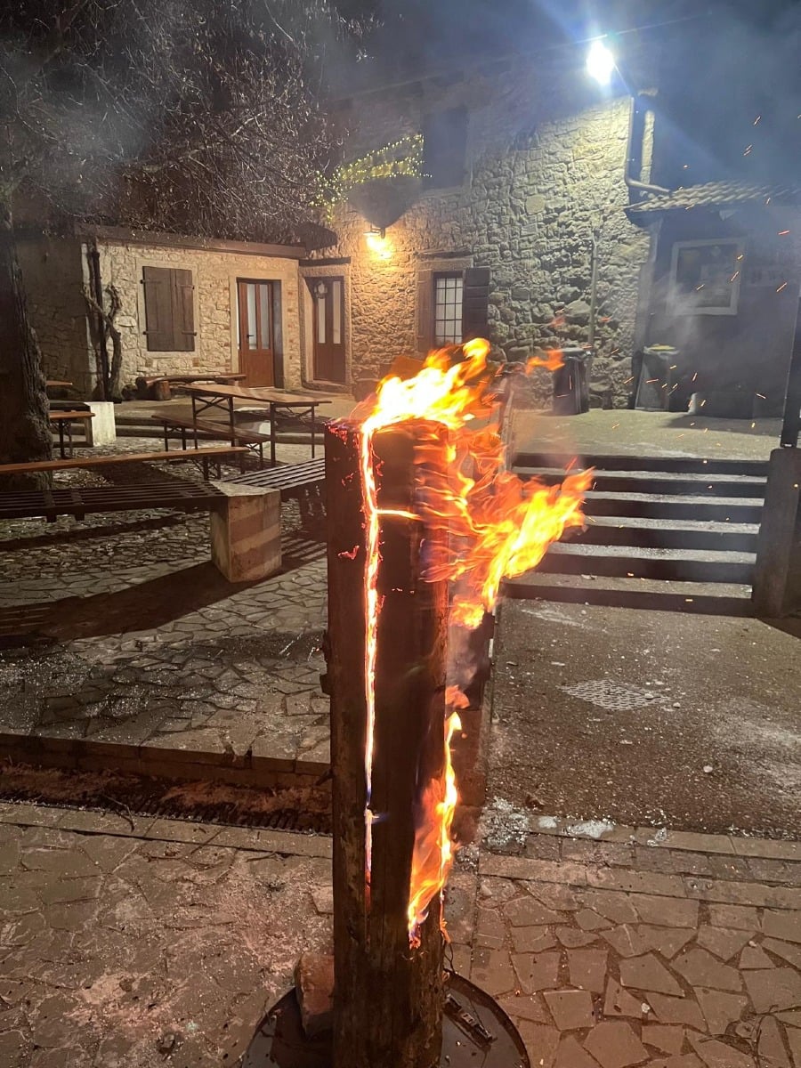 Terminata la funzione religiosa, la festa si sposterà nella piazzetta antistante, dove dalle 22.30 la Pro Loco accoglierà i partecipanti con i grandi classici delle feste: vin brulè, panettone e castagne serviti all’aperto, circondati dalla vista spettacolare che solo questo borgo può regalare.