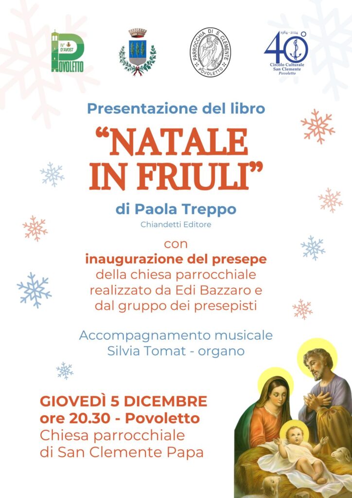La serata di inaugurazione del presepe e la presentazione del libro sono state organizzate con il supporto di Comune di Povoletto, Parrocchia di San Clemente, Circolo Culturale San Clemente di Povoletto e associazione "Quarte d'Avost Povoletto", realtà che da anni si impegnano nella promozione della cultura e delle tradizioni locali.