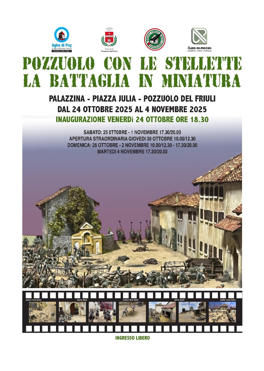 Venerdì 24 ottobre, alle 18.30, verrà inaugurata la mostra “Pozzuolo con le stellette, la battaglia in miniatura”, allestita nella Palazzina di Piazza Julia.
