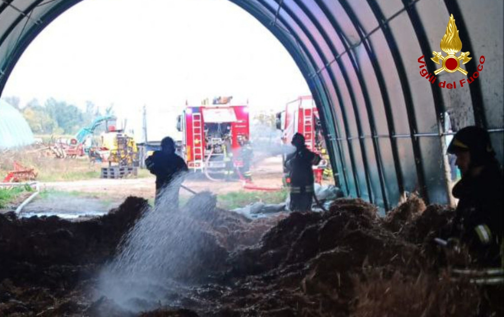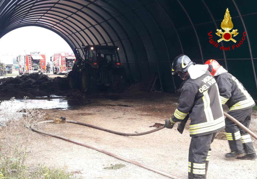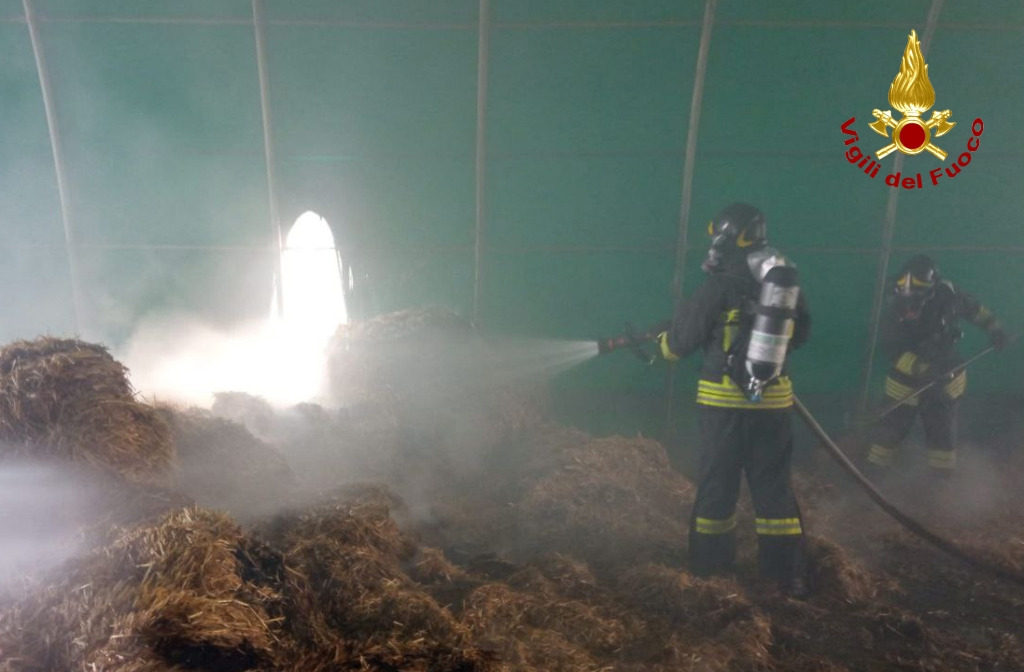 Rotoballe in fiamme in un capannone a Coseano (UD): pompieri sul posto