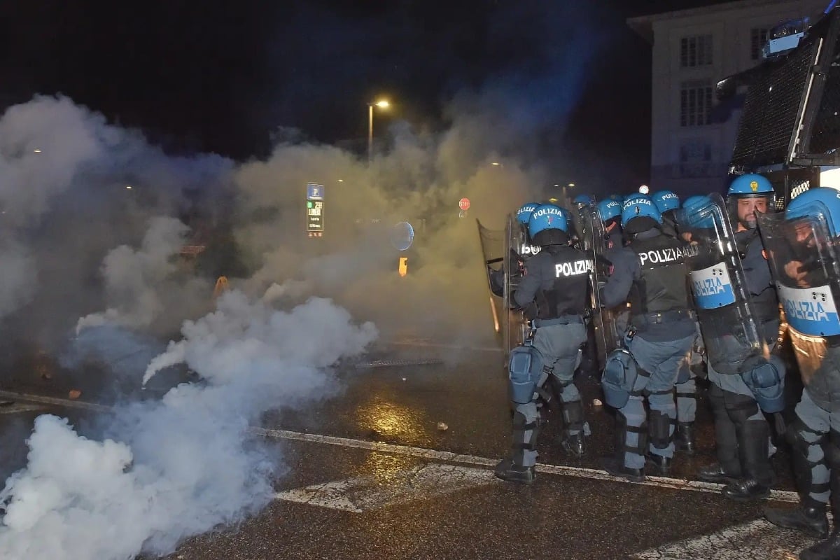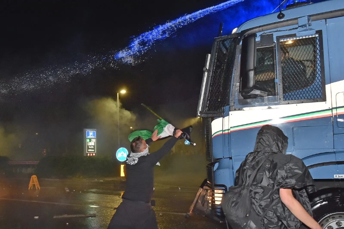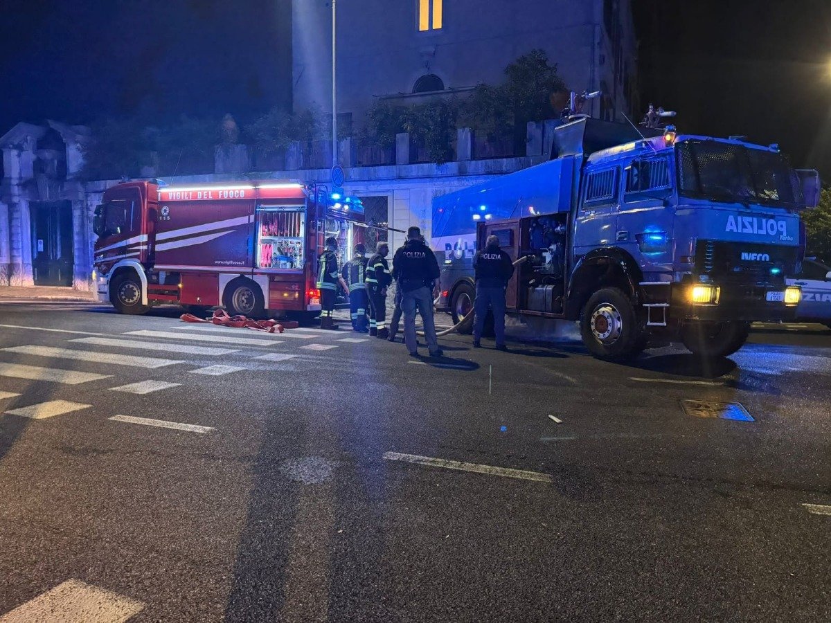 Raggiunti dapprima da personale di Polizia, poi da un idrante e successivamente da un secondo, i manifestanti venivano allontanati senza contatto fisico, unicamente con l’uso degli idranti e con il lancio di circa 150 lacrimogeni.