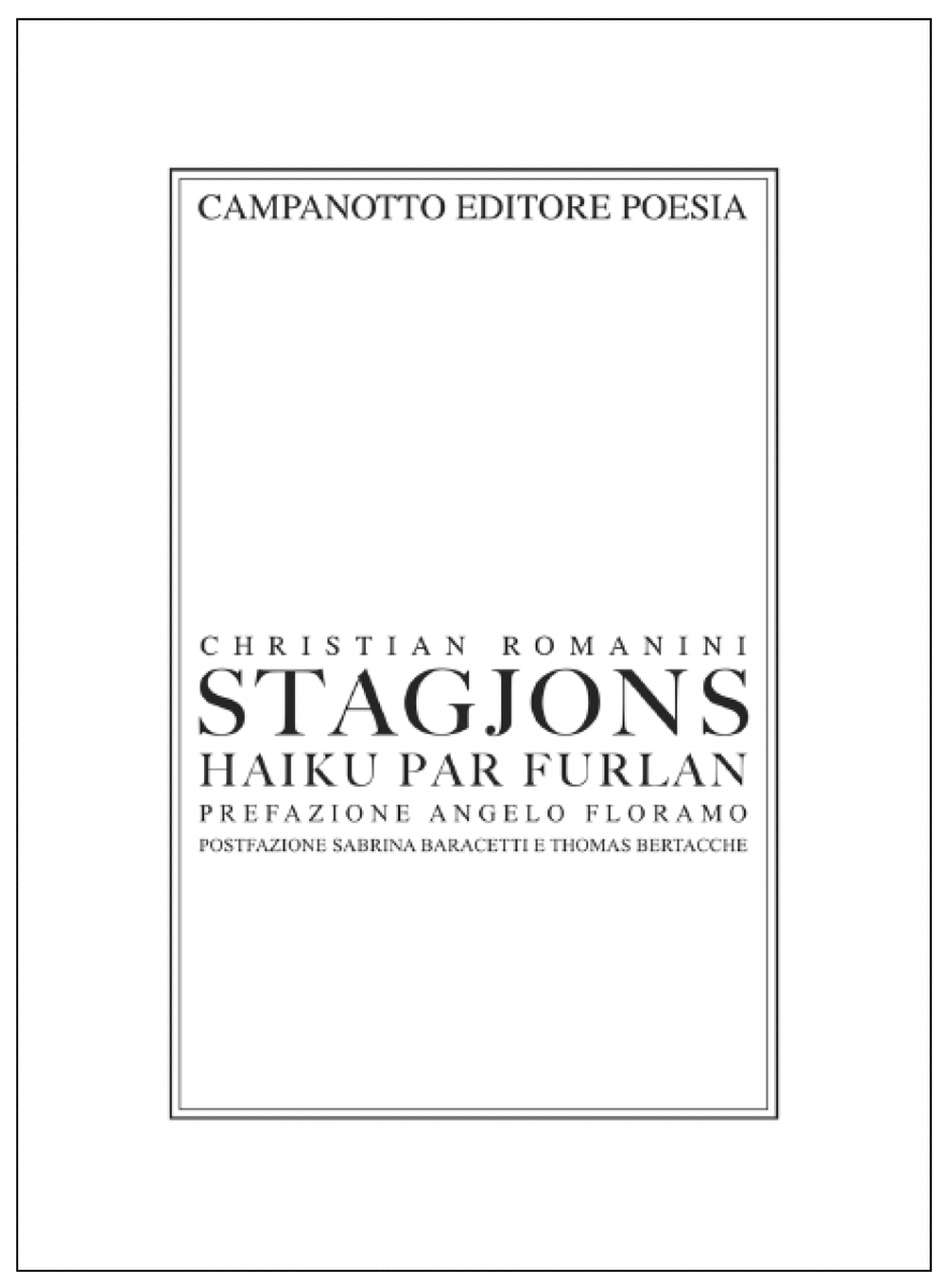 La raccolta “Stagjons. Haiku par Furlan” reinterpreta la tradizione giapponese dell’haiku nella lingua friulana, esaltando la bellezza della natura e la profondità del sentimento umano in soli tre versi. Un esperimento linguistico e culturale che unisce Oriente e Friuli, in una fusione di delicatezza, minimalismo e introspezione.