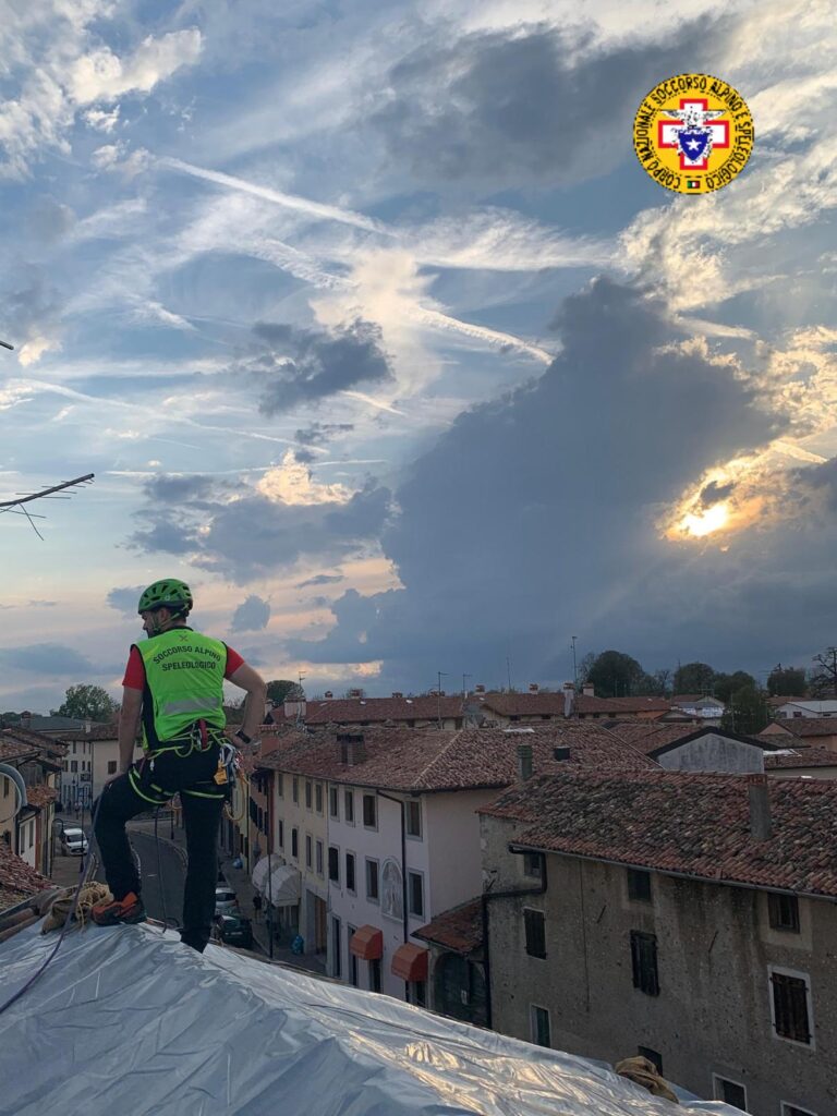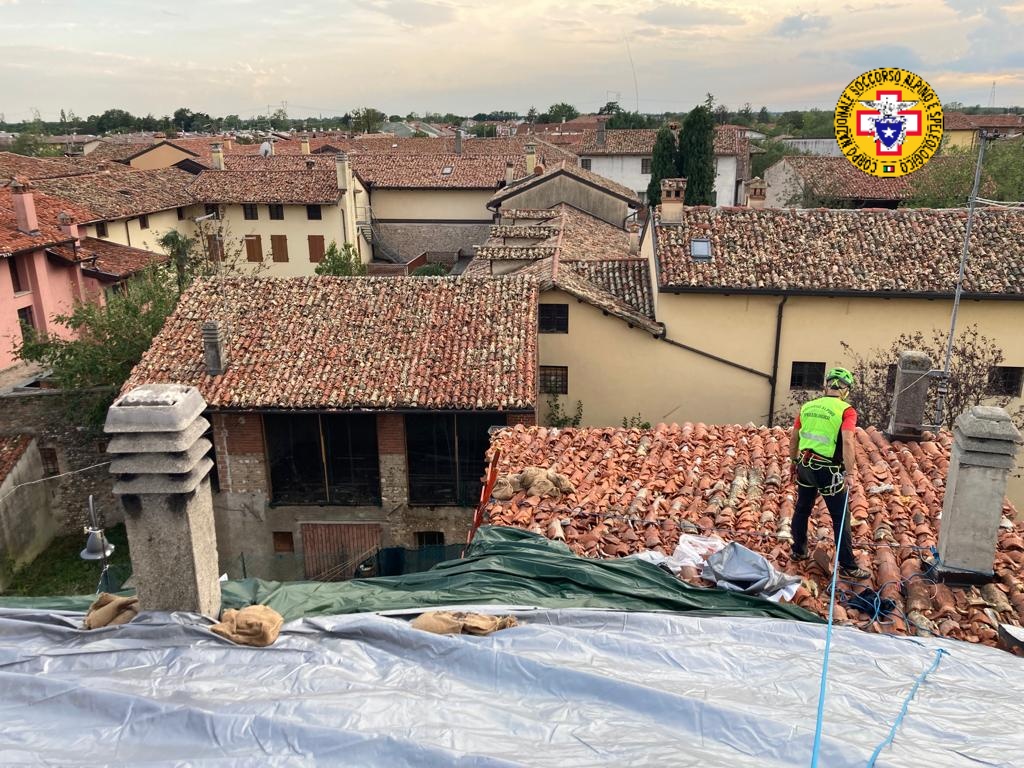 Sui tetti a Mortegliano (UD) dopo i danni del maltempo: il Soccorso Alpino a supporto della Protezione Civile