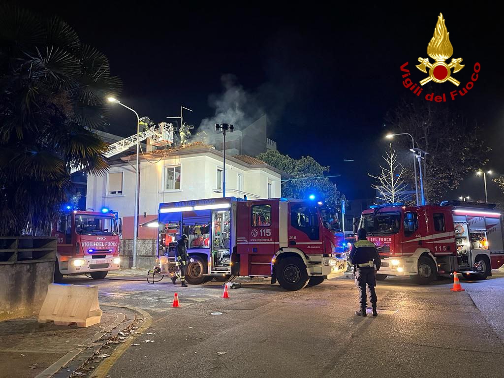 Alle 18,30 circa di ieri, 25 dicembre 2022, i Vigili del fuoco di Udine sono intervenuti con due squadre, l'autoscala, la partenza NBCR (Nucleare Biologico Chimico Radiologo) della sede centrale di Via Popone e due squadre del distaccamento di Codroipo (UD) per l'incendio del tetto di una casetta, di due piani fuori terra, sita in Via Birago a Udine.
