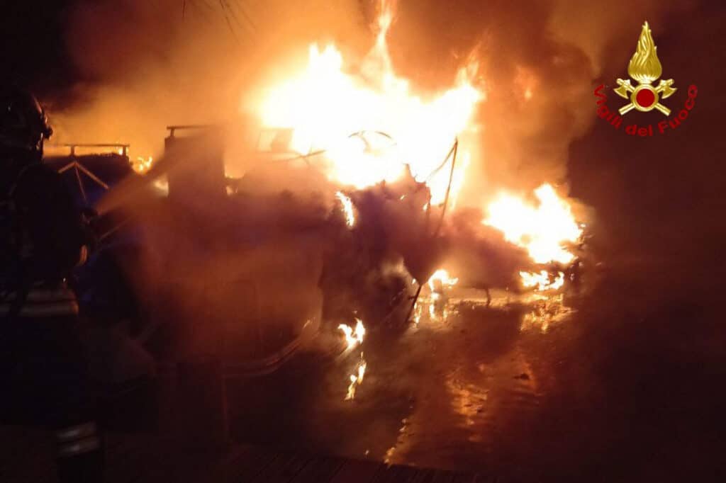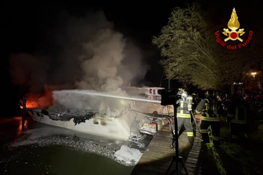 I VV.F. hanno immediatamente iniziato le operazioni di spegnimento, per le quali hanno usato anche liquido schiumogeno, riuscendo ad evitare che le fiamme si propagassero alle altre imbarcazioni ormeggiate nelle immediate vicinanze ma, a causa dell’incendio già sviluppato a tutta l’imbarcazione costruita vetroresina, non hanno potuto entrare nella cabina per soccorrere la donna.