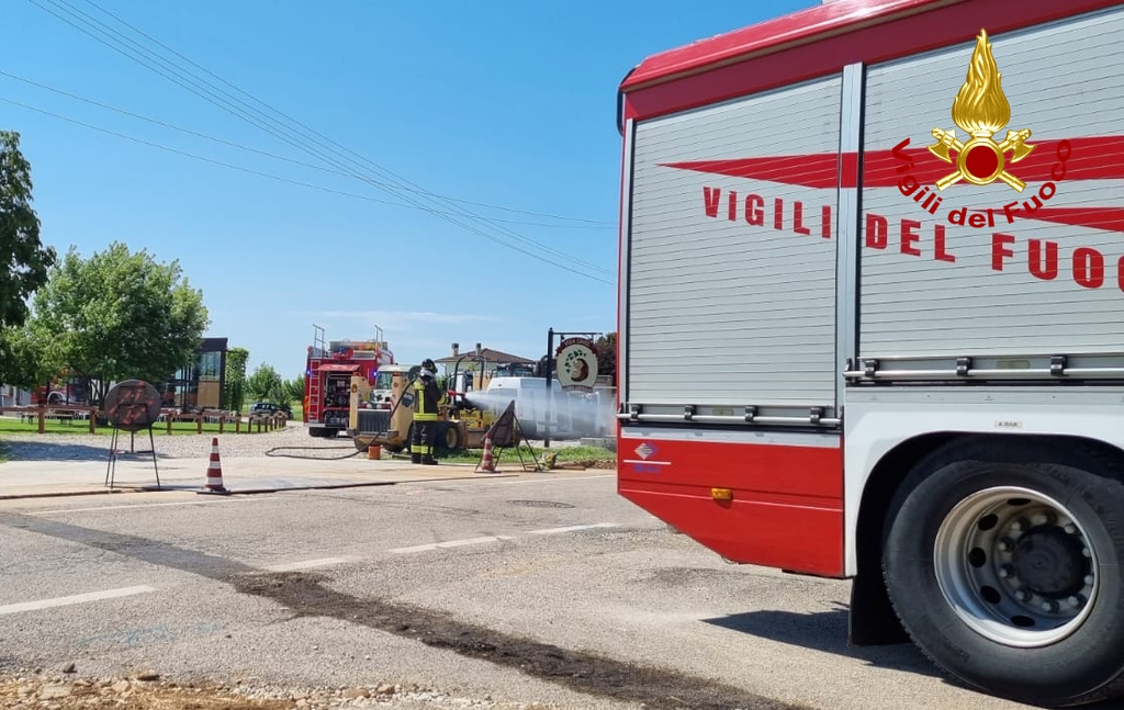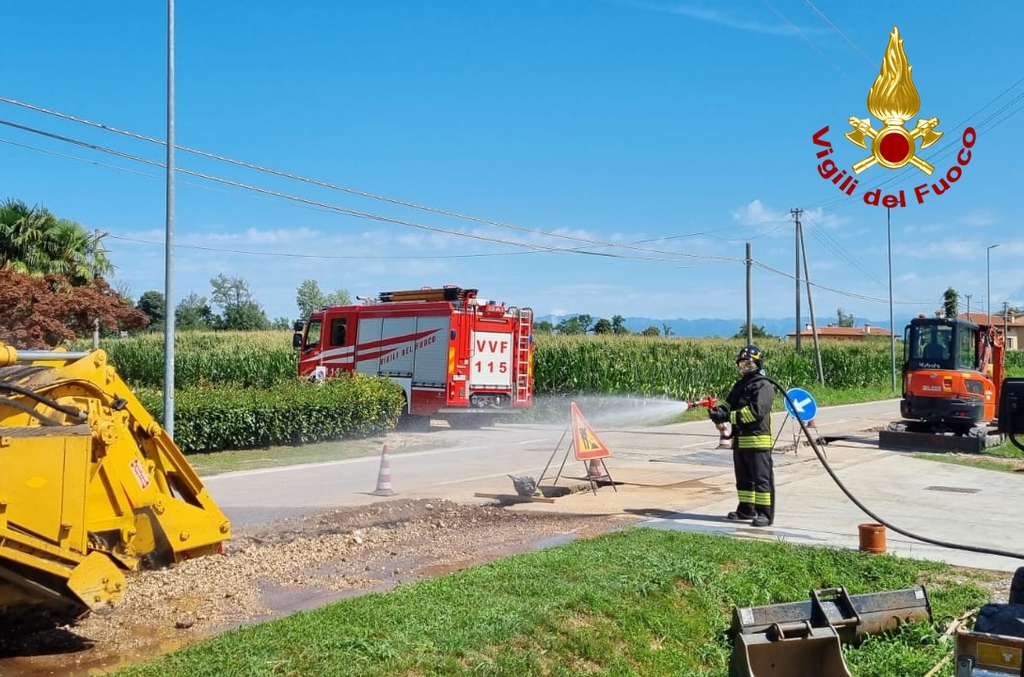 A causa della rottura di una tubazione di gas metano, durante dei lavori stradali, dalle ore 10.15 circa di oggi, 20 luglio 2023, i Vigili del fuoco del comando di Udine stanno intervenendo con la squadra del distaccamento di Codroipo (UD) supportata dall'autobotte giunta dalla sede centrale di Udine in Via Vittorio Veneto nel comune di Lestizza (UD).