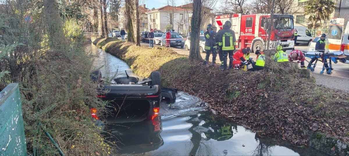 Auto esce di strada e si capotta nella roggia di Palma a Udine: un uomo di 60 anni muore dopo il trasporto in ospedale.