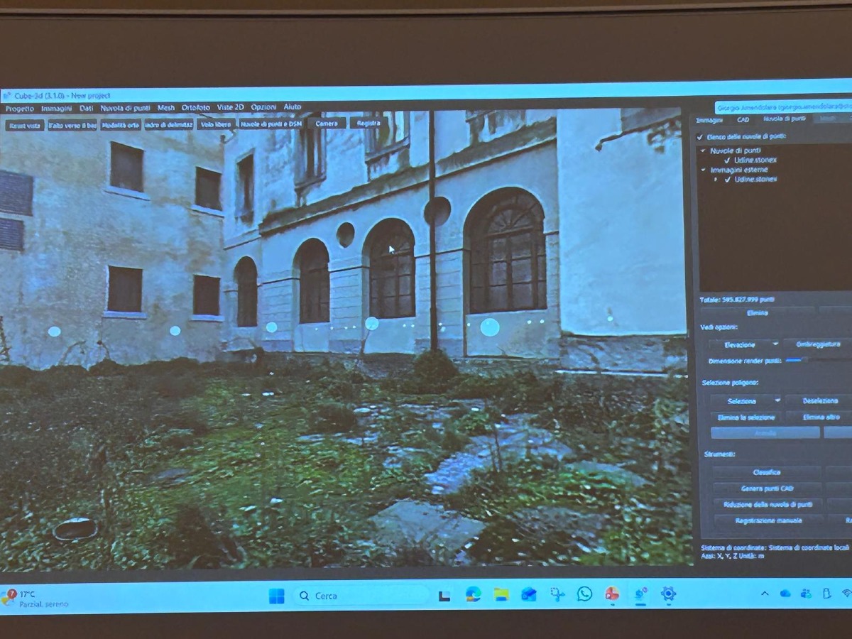 Uno dei momenti più apprezzati dai partecipanti è stato il rilievo in diretta di Piazza XX Settembre e dell’edificio ex Percoto, due beni comunali mappati con le nuove tecniche tridimensionali. I dati acquisiti saranno ora integrati negli archivi informativi del Comune, costituendo una base digitale aggiornata e precisa utile per i futuri progetti di riqualificazione urbana.