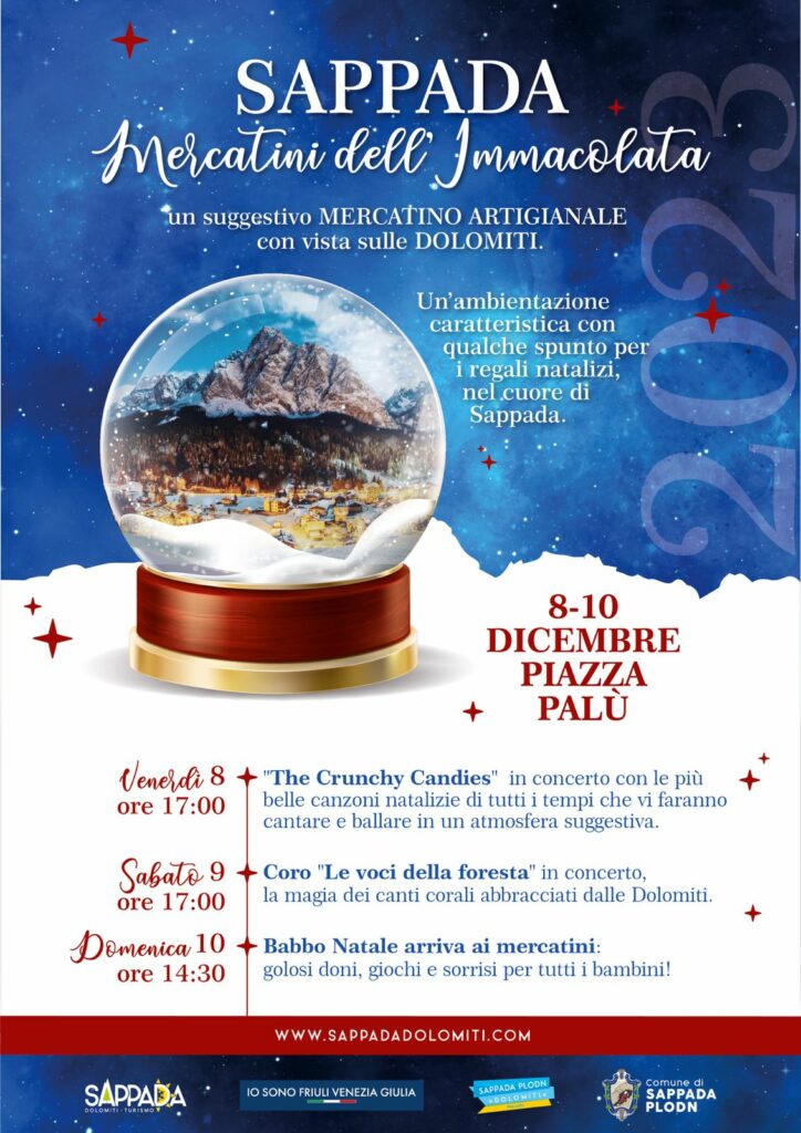Anche l’arredo urbano avrà una veste nuova per l’occasione: l’associazione commercianti ha organizzato l’allestimento coordinato delle vetrine delle attività del paese e ideato un percorso all’aperto, lungo la via principale, di fotografie storiche della località in bianco e nero: una passeggiata fotografica con 90 scatti della Sappada che fu, nei suoi incantevoli scorci innevati. Dall’8 a 10 dicembre, nella centrale Piazza Palù artigiani e associazioni proporranno nelle tipiche casette dei mercatini natalizi, dolciumi, pregiate praline di cioccolato, lavori artistici, miele, creazioni con cera e natalizie. Ospite d’eccezione a questa edizione dei mercatini dell’Immacolata il rinomato maestro cioccolatiere Piero Zerbin di Cocambo (Aquileia).